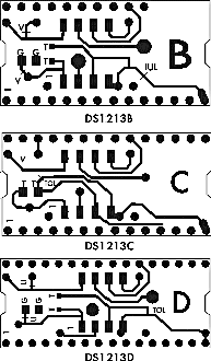 Интеллектуальные часы/ОЗУ имеют индекс DS1216B/C/D/H. Эти панельки имеют то же функциональное назначение, что и DS1213, но дополнительно на печатной плате устанавливается 16-выводная микросхема, которая содержит контроллер напряжения и фантомные часы в одном корпусе. Все DS1216 выпускаются с выходом сигнала "Сброс" (RTS) на выводе 1. Если сигнал "Сброс" не требуется, то достаточно металлическую дорожку, помеченную буквами "RES", перерезать.